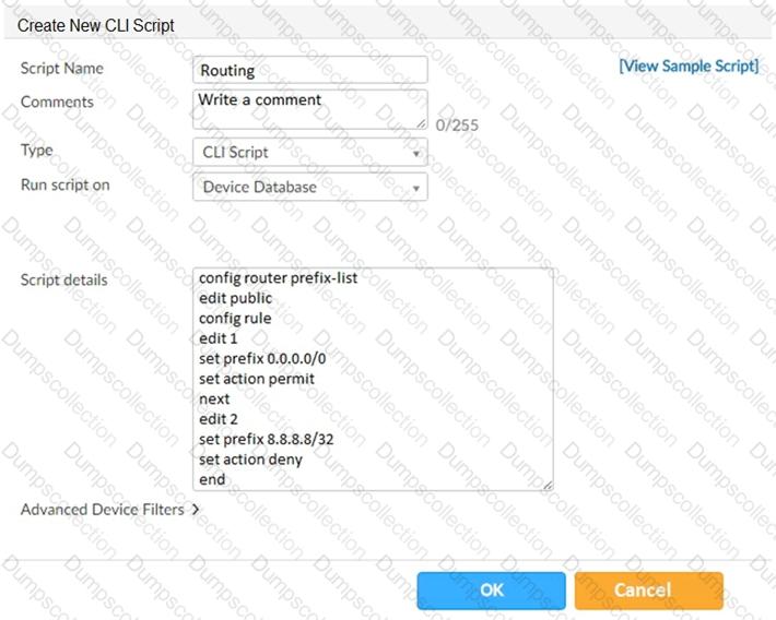 Which two statements are true if the script is executed using the Device Database option? (Choose two.)
