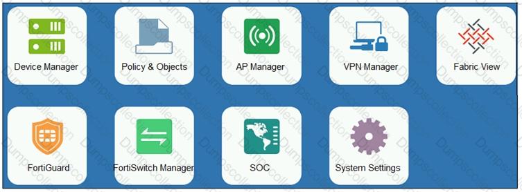 An administrator logs into the FortiManager GUI and sees the panes shown in the exhibit.
