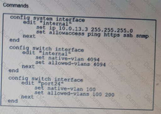 port24 is the only uplink port connected to the network where access to FortiSwitch management services is possible. However, FortiSwitch is still not accessible on the management interface. Which two actions should you take to fix the issue and access FortiSwitch? (Choose two.)