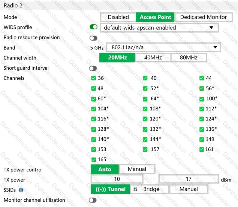 When configuring Auto TX Power control on an AP radio, which two statements best describe how the radio responds? (Choose two.)