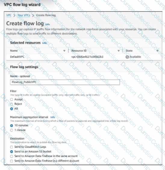 An experienced AWS administrator is creating a new virtual public cloud (VPC) flow log with the settings shown in the exhibit.