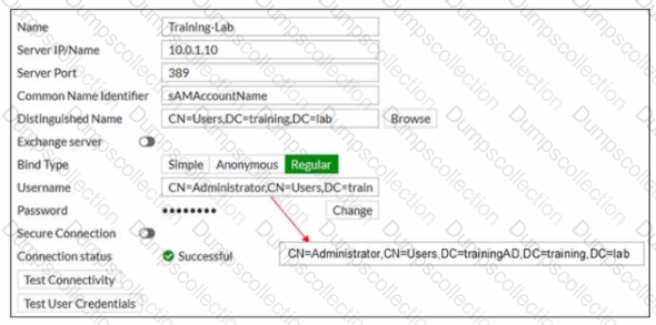 Examine the LDAP server configuration shown in the exhibit Note that the Username setting has been expanded to display Its full content