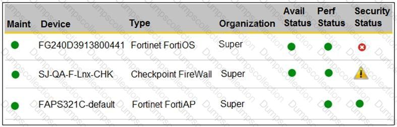 How do you view information presented in the exhibit and what does the FortiGate device security status tell you?
