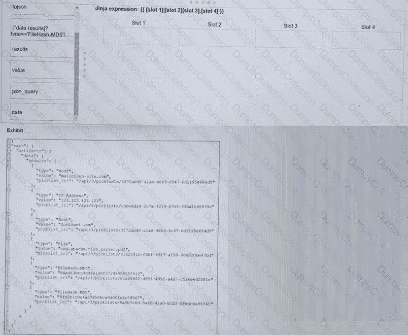 Refer to the exhibit. What is the correct Jinja expression to filter the results to show only the MD5 hash values?