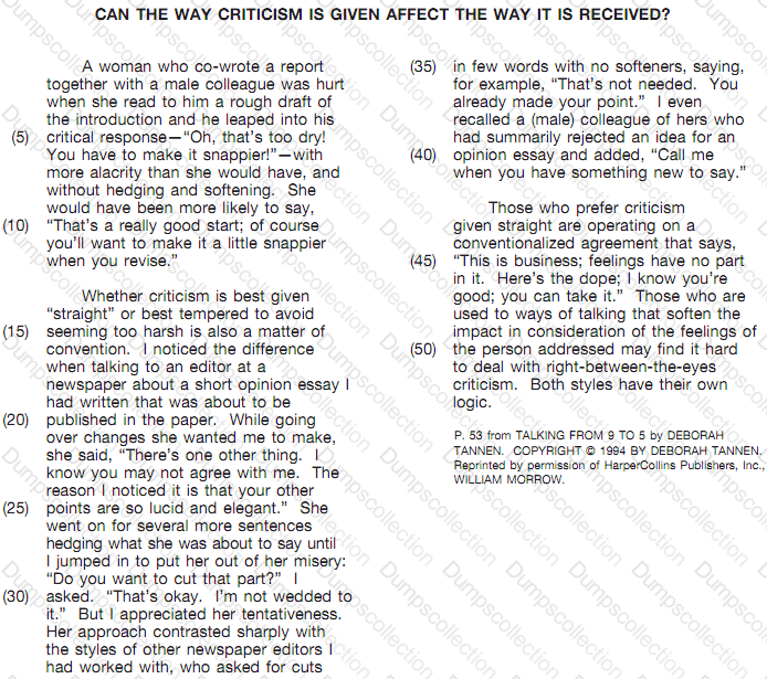 Based on the information above and the information in the passage, which of the following best summarizes the author’s view about criticism?