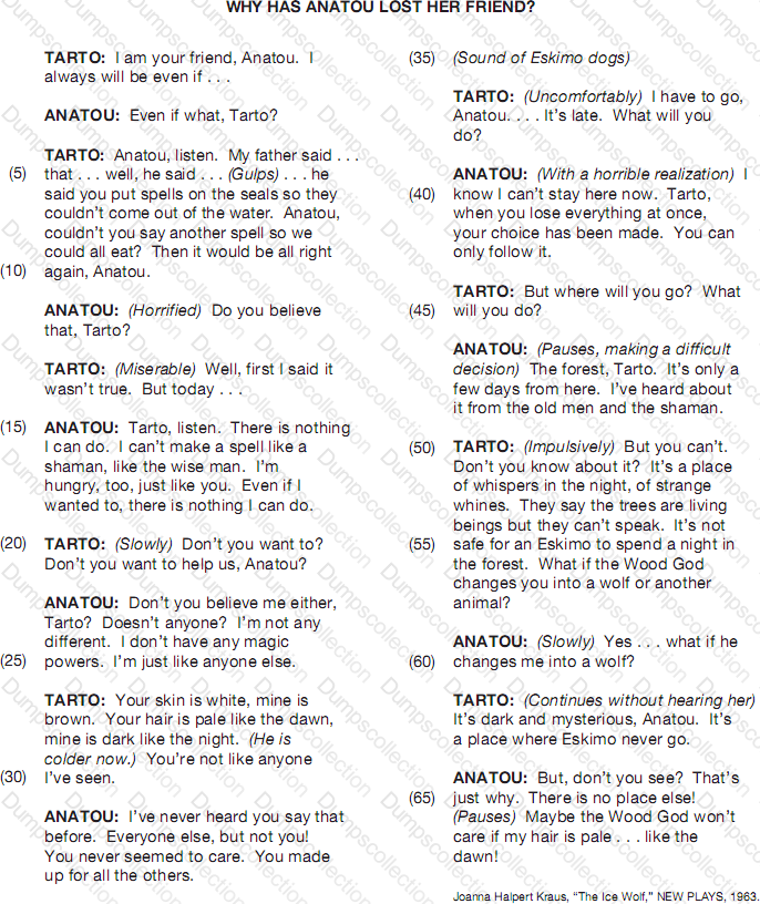 When Anatou protests that she has no magical power, Tarto answers by saying, “Don’t you want to? Don’t you want to help us, Anatou?” (lines 20–21). What do Tarto’s words reveal?