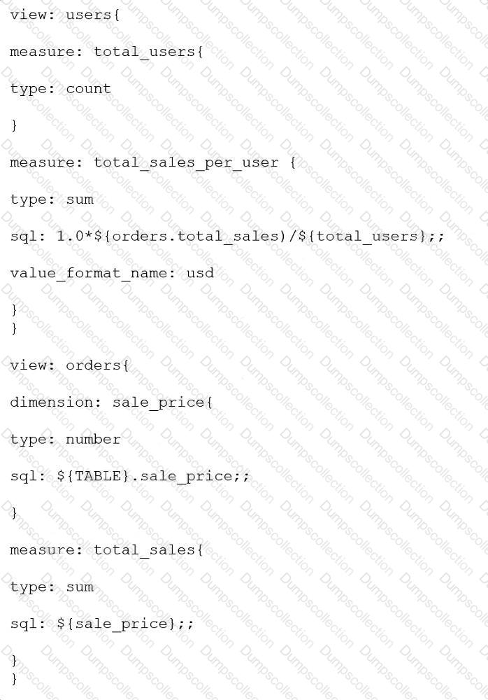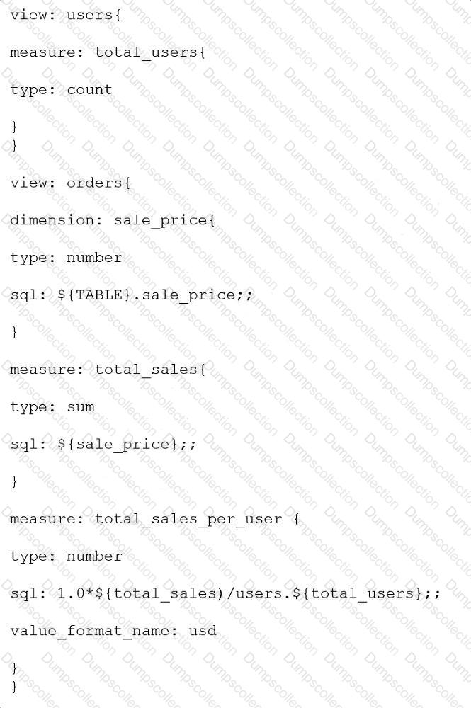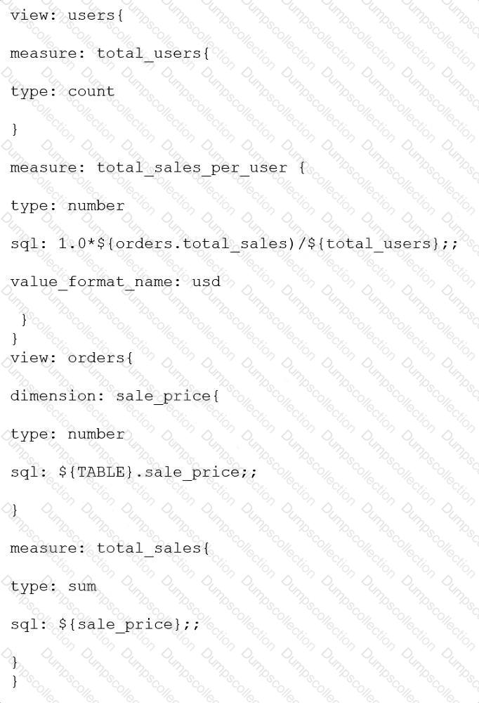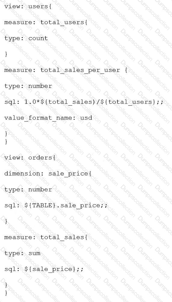 A developer wants to calculate the ratio of total sales from the orders view and total users from the users view.