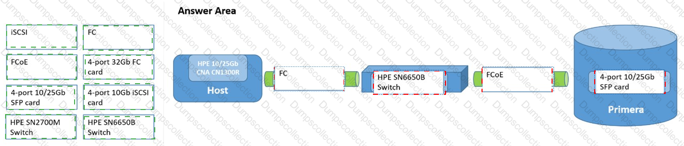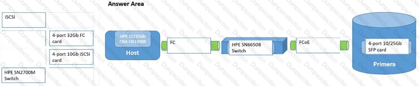 Drag the appropriate component to each box on the diagram to design a new storage network.
