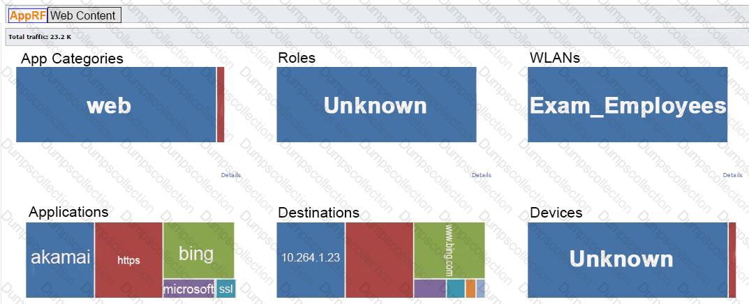 The exhibit shows output from a Mobility Master (MM) dashboard. What is a valid reason for the administrator to click the akamai square under applications?