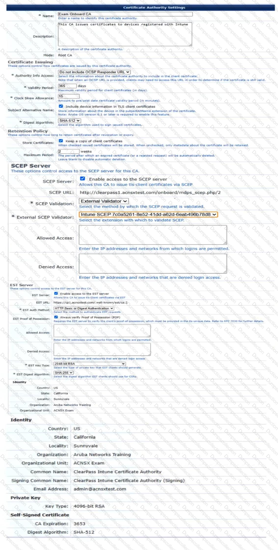You have been given this certificate to install on a ClearPass server for the RADIUS/EAP and RadSec usages.