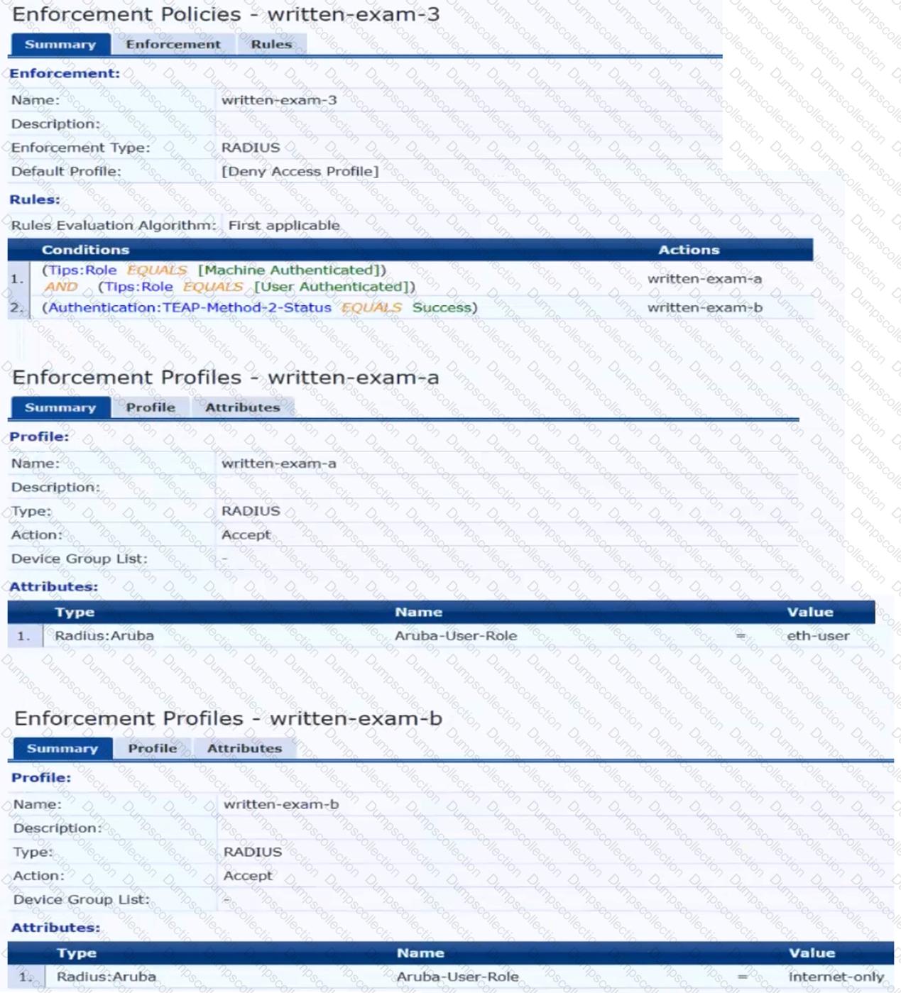 The customer wants to start tunneling wired clients that pass user authentication only to an Aruba gateway cluster. The gateway cluster should assign these clients to the “eth-internet" role. The gateway should also handle assigning clients to their VLAN, which is VLAN 20.
