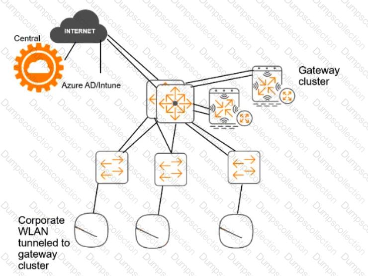 For the network infrastructure, this customer has Aruba APs and Aruba gateways, which are managed by Central. APs use tunneled WLANs, which tunnel traffic to the gateway cluster. The customer also has AOS-CX switches that are not managed by Central at this point.