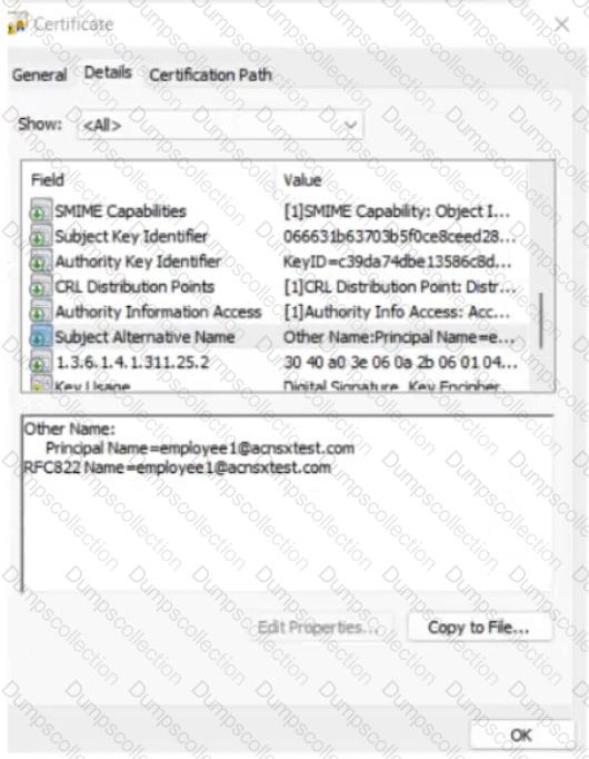 The company currently has a Windows domain and Windows CA. The Window CA issues certificates to domain computers, domain users, and servers such as domain controllers. An example of a certificate issued by the Windows CA is shown here.