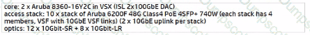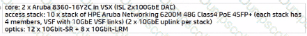 Access Slack: 10 x Slack of Aruba 6200F 48G Class4 PoE 4SFP- 740W each stack has A members. VSF