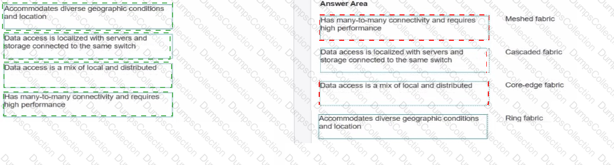 Match the fibre channel topology to its use case. Each answer will be used once.