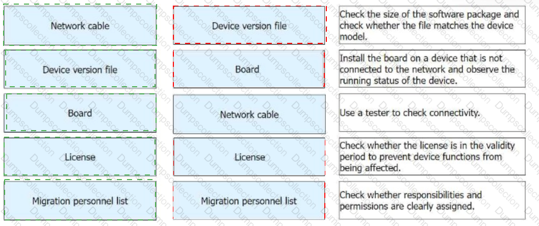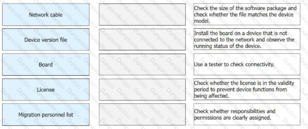 In the preparation phase of a migration project, the software and hardware need to be checked. Match the operation objects in the preparation phase with the corresponding operation contents.
