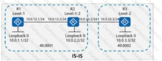 On the IS-IS network shown in the figure, R1 imports a default route using the default-route-advertise always level-1 command. Which of the following statements is false?