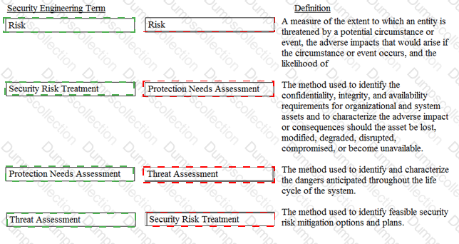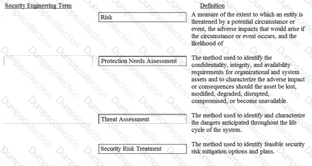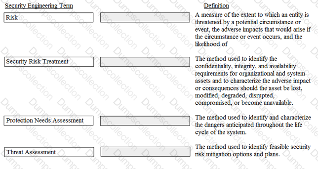 Drag the following Security Engineering terms on the left to the BEST definition on the right.