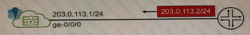 You configure Source NAT using a pool of addresses that are in the same subnet range as the external ge-0/0/0 interface on your vSRX device. Traffic that is exiting the internal network can reach external destinations, but the return traffic is being dropped by the service provider router.
