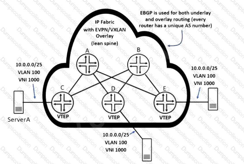 Referring to the exhibit, ServerA sends a single IP packet destined to 10.0.0.127.