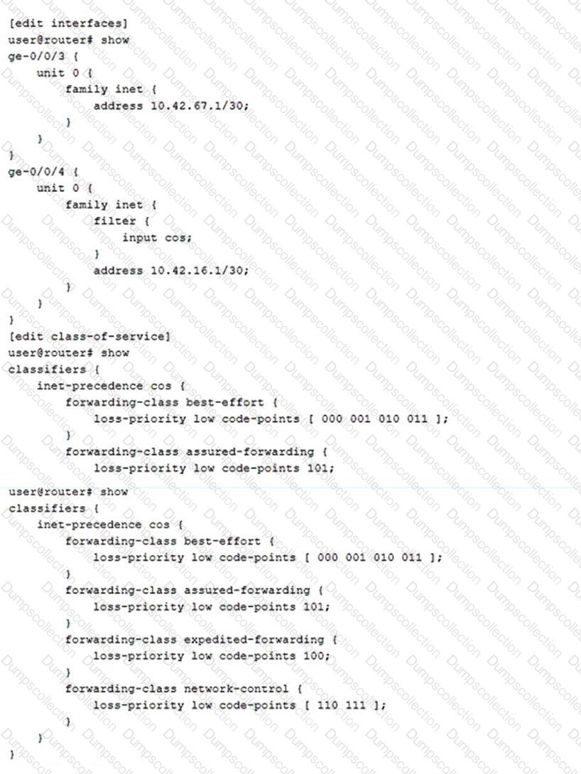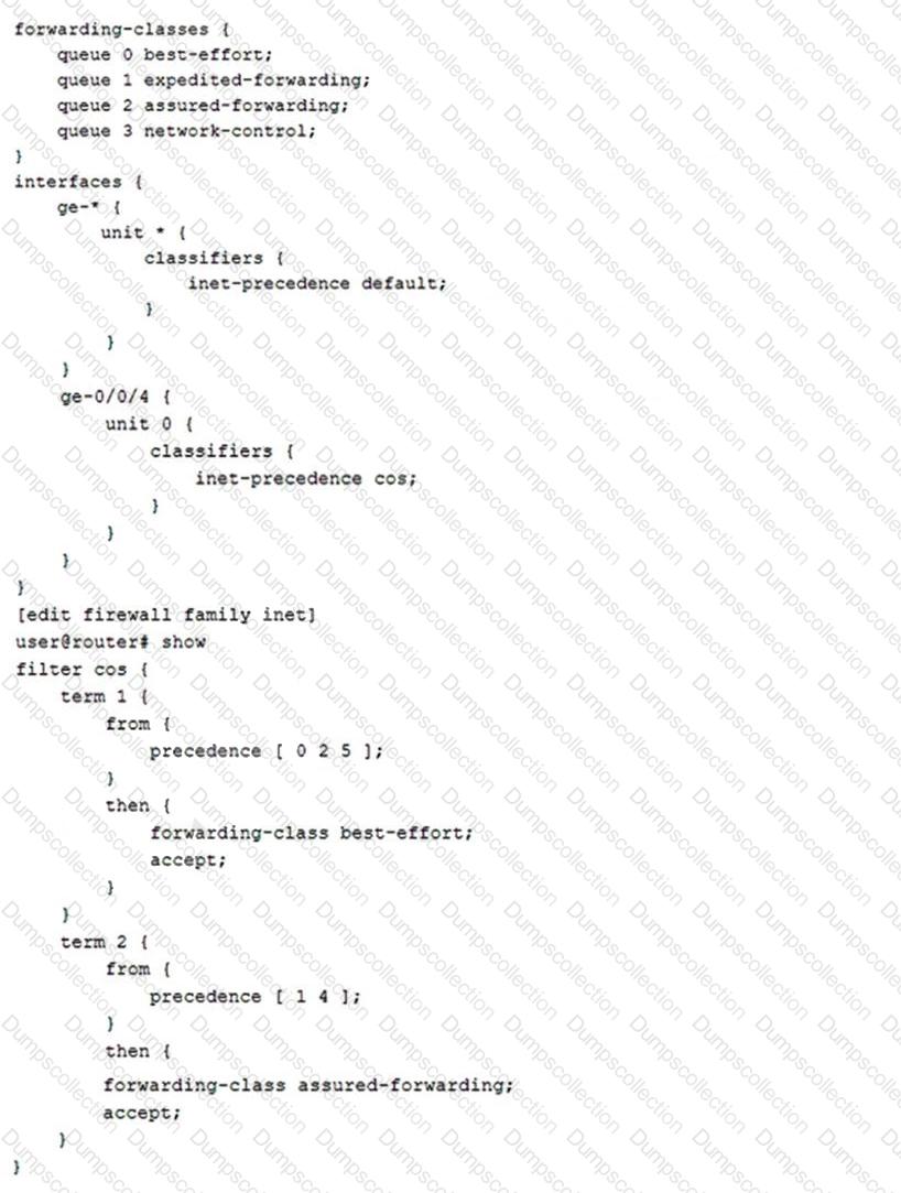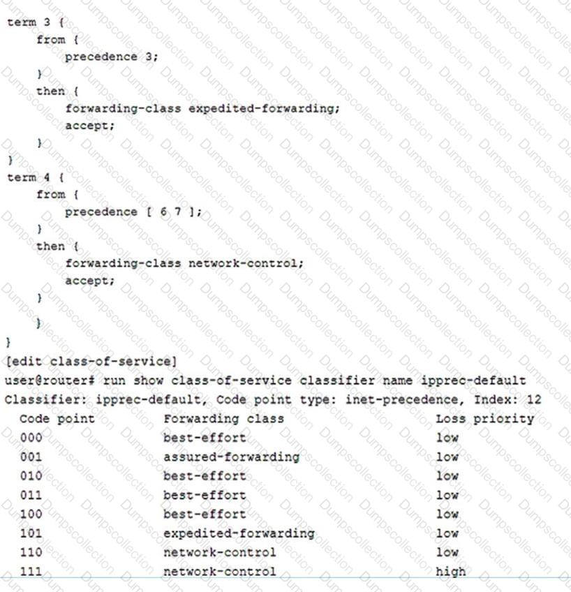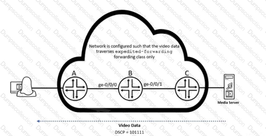 A user is attempting to watch a high-definition video being streamed from the media server over the network. However, the user complains that the experienced video quality is poor. While logged on to router B, a Juniper Networks device, you notice that video packets are being dropped.