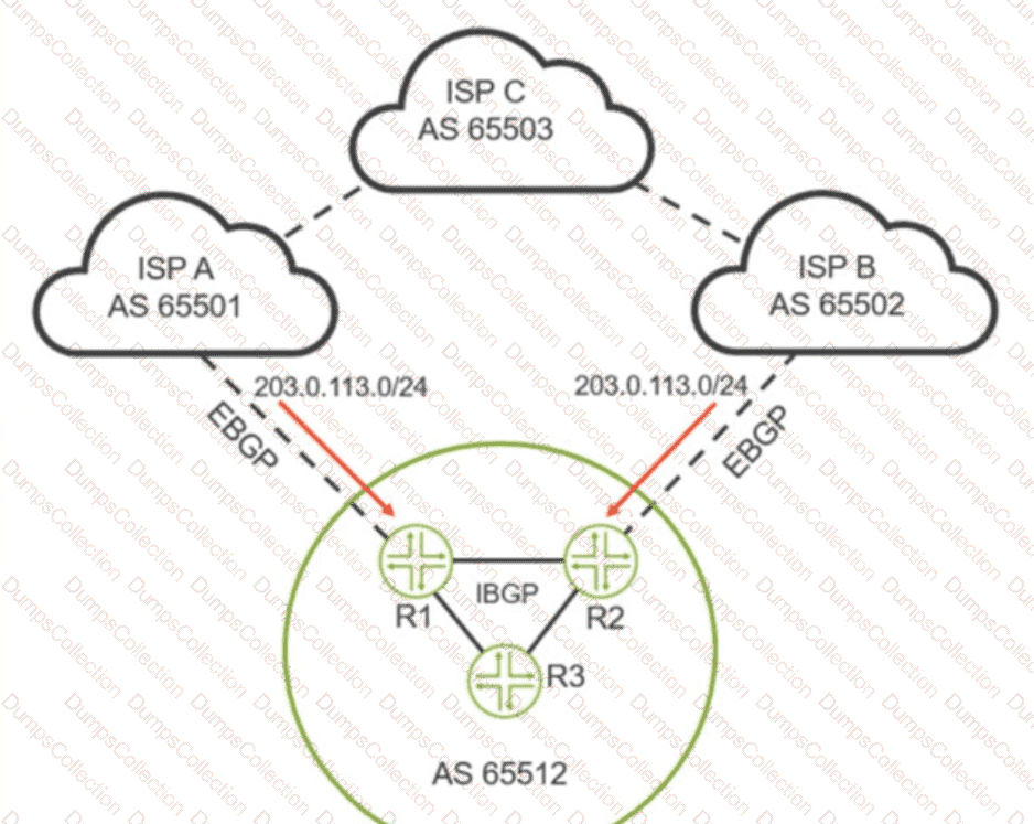 You are receiving the 203 0.113.0/24 route from both upstream ISPs You are asked to ensure that ISP A is the preferred ISP for traffic being sent to the 203.0.113.0/24 network from devices in AS 65512.