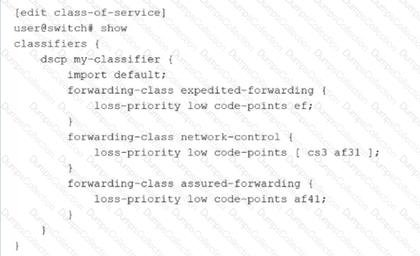 As shown in the exhibit, you have implemented CoS classifiers using Differentiated Services Code Point (DSCP)