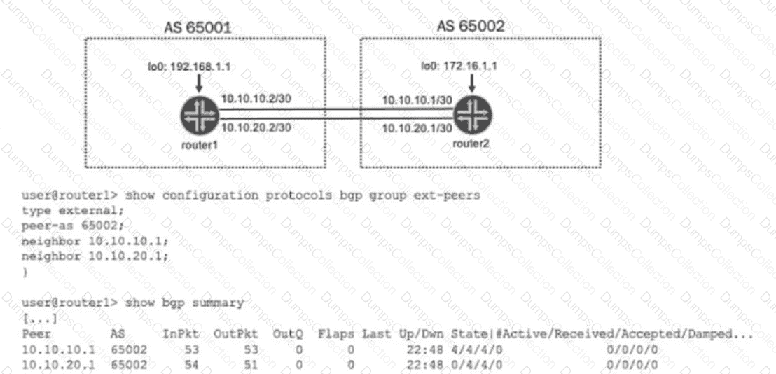 Referring to the exhibit, what will enable active routes from both peers?