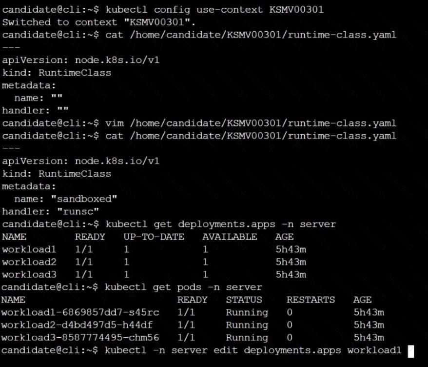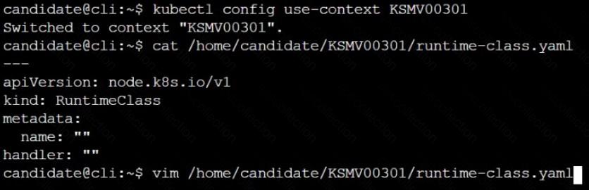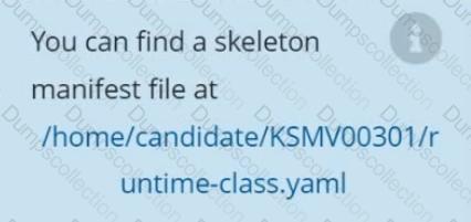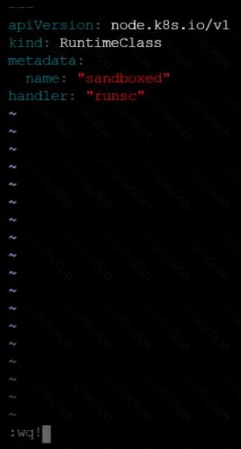 Create a RuntimeClass named untrusted using the prepared runtime handler named runsc.