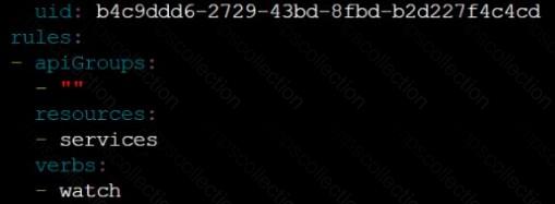 Edit the existing Role bound to the Pod's ServiceAccount sa-dev-1 to only allow performing watch operations, only on resources of type services.