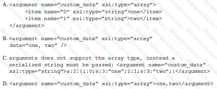 How do you pass an array [‘one’, ‘two] as a parameter to you block using the layout XML arguments directive?