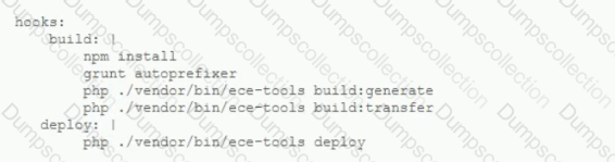 After making changes lo custom commands in the deploy and buildphases you deploy to Staging.The deployment takes much longer than expected, and Stagingis in maintenance mode tor most of this time.