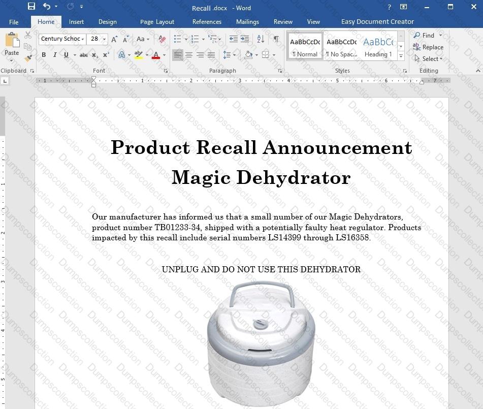 You work in Customer Communications at Northwind Traders. You are preparing a product recall announcement.