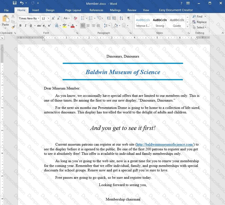 You are preparing a letter to museum members announcing a new exhibit and urging them to renew their membership.
