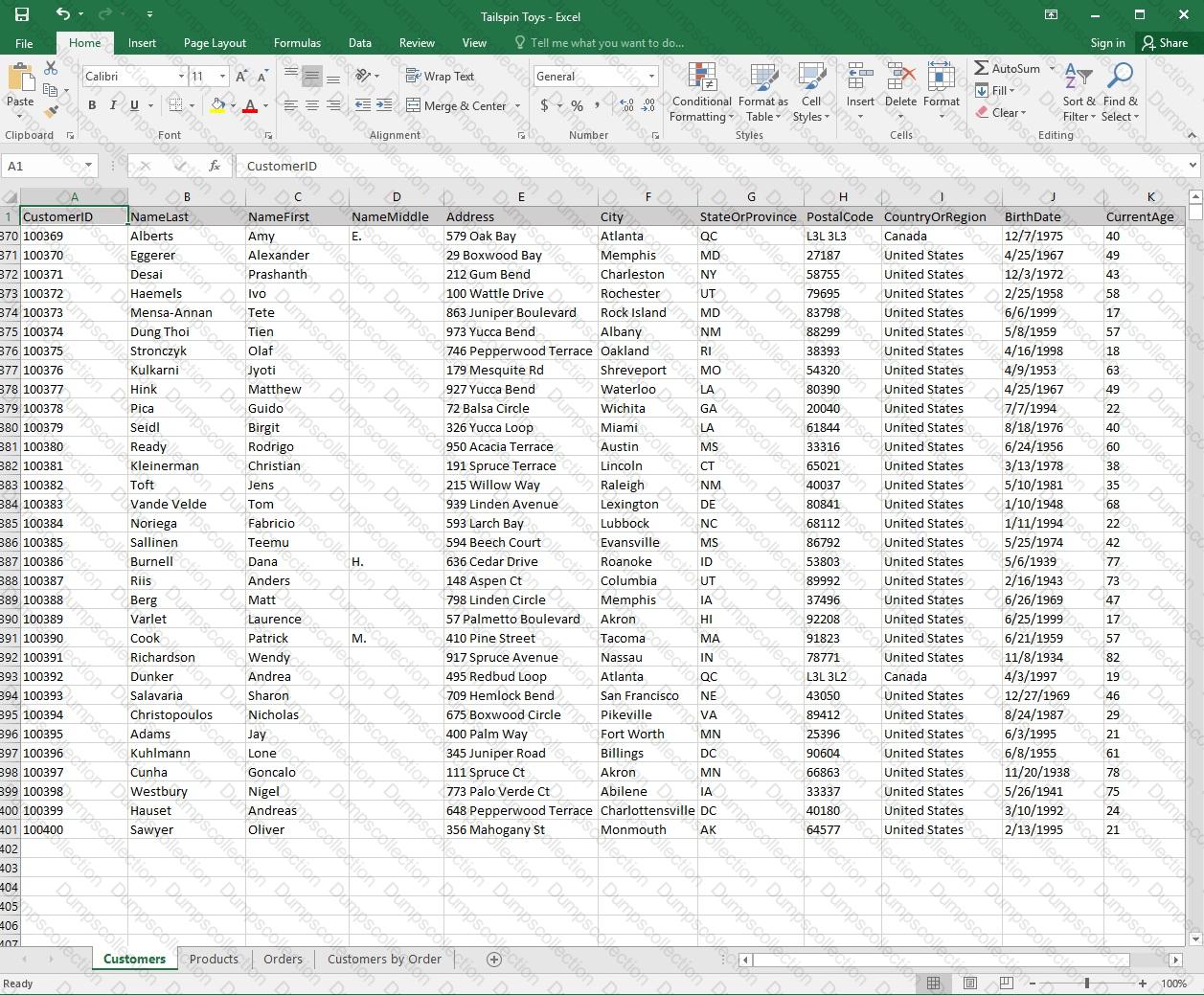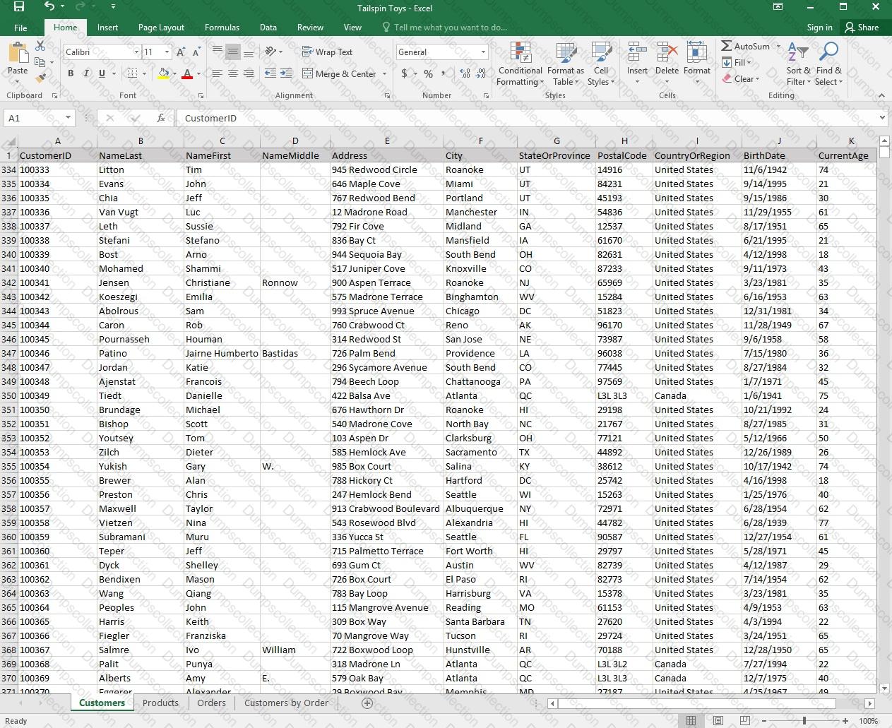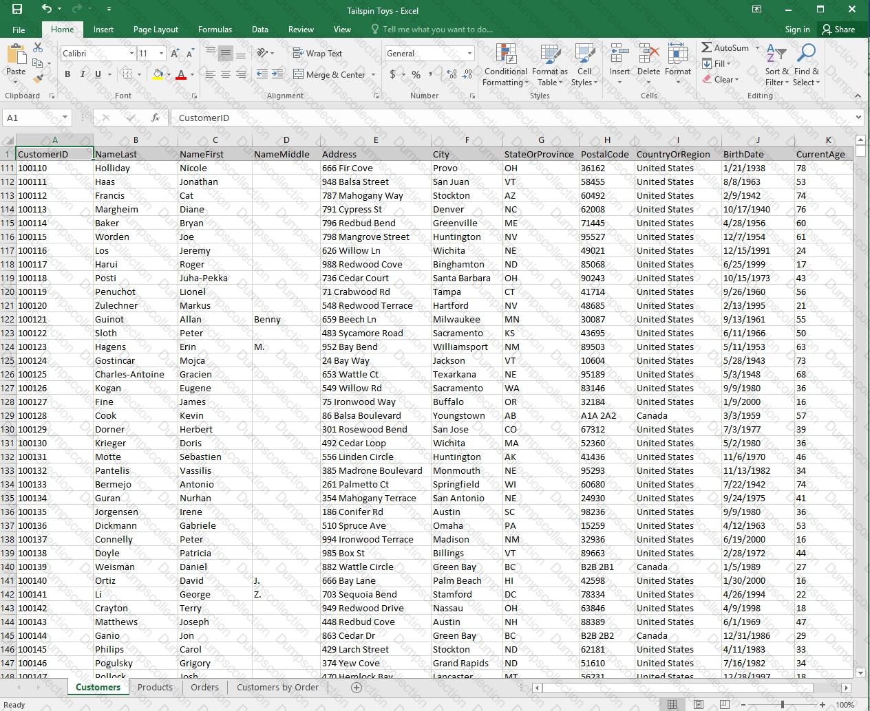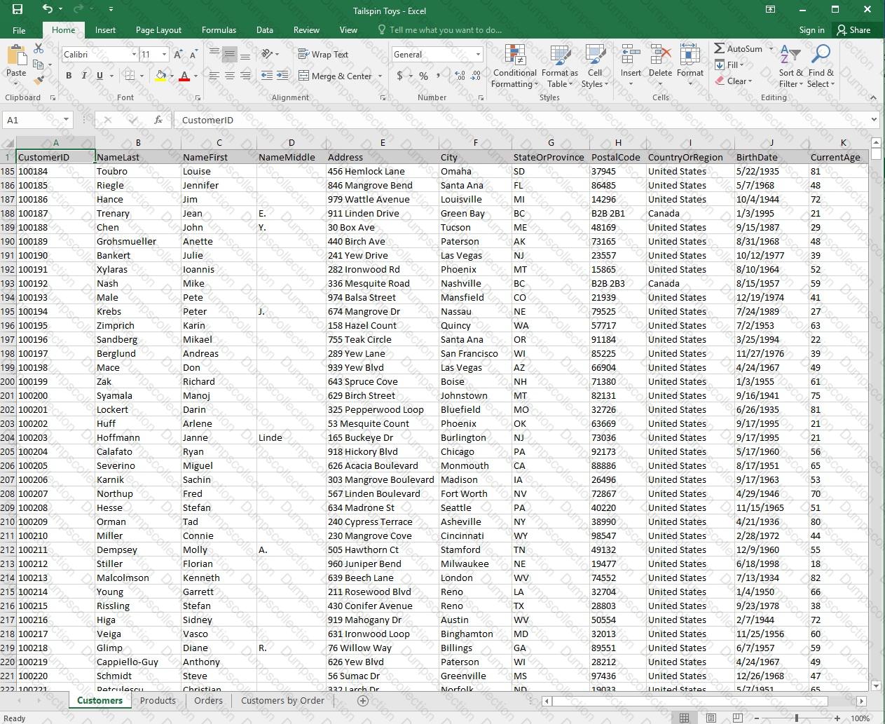 You recently opened an online toy store. You have sold products to 500 individual customers. You are evaluating customer data and order data.