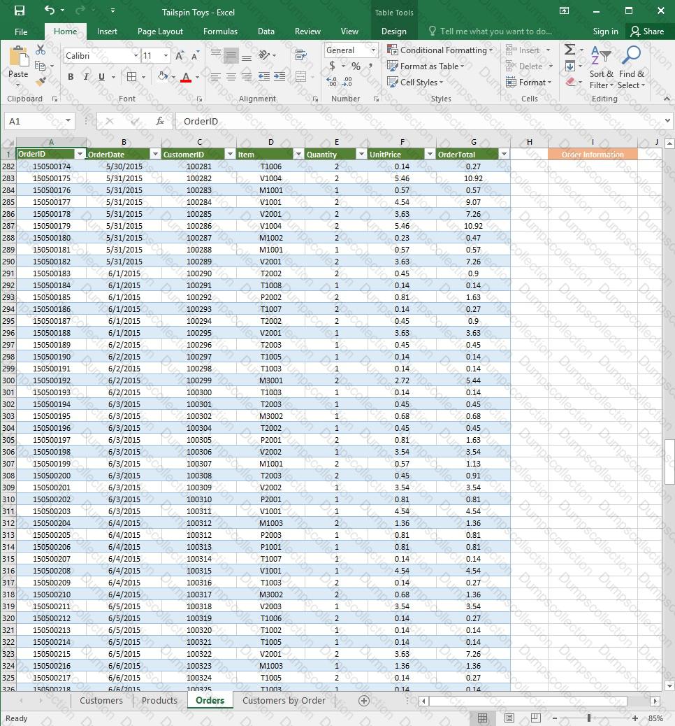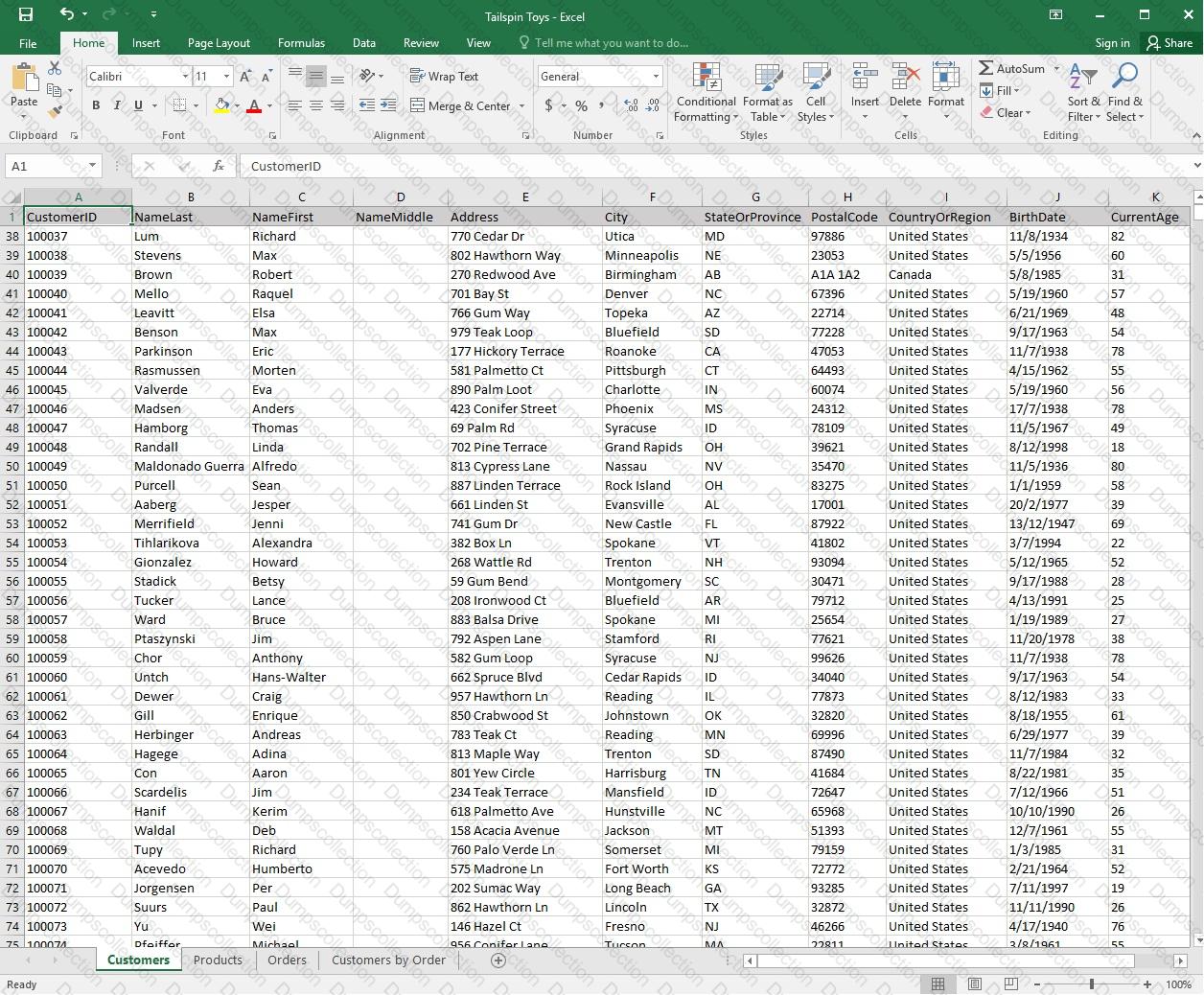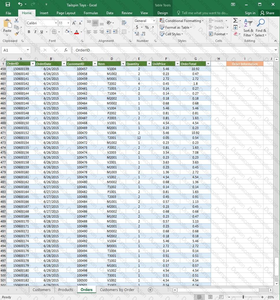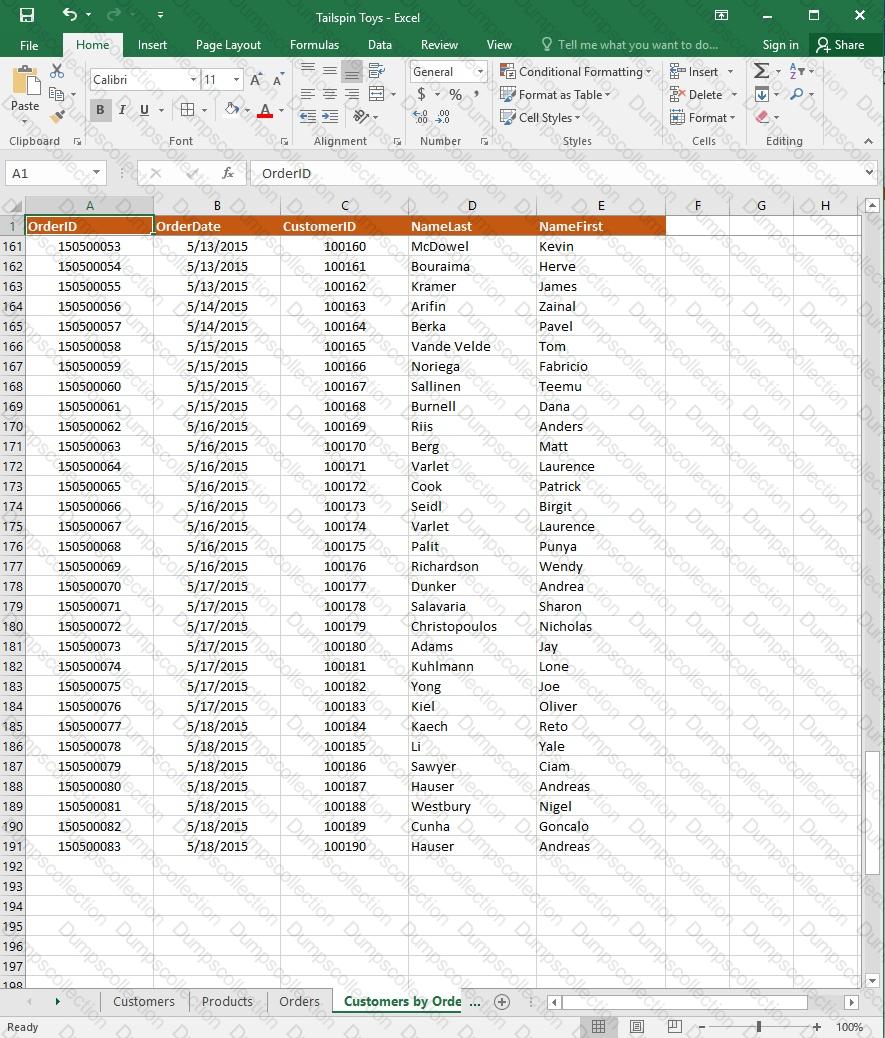 You recently opened an online toy store. You have sold products to 500 individual customers. You are evaluating customer data and order data.