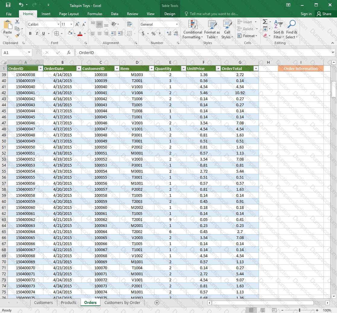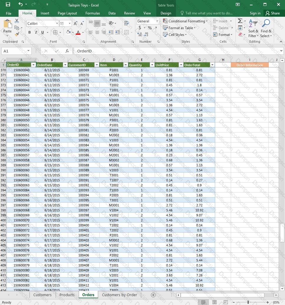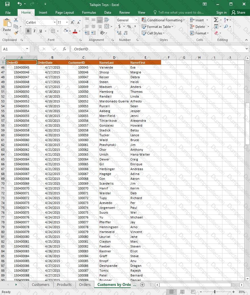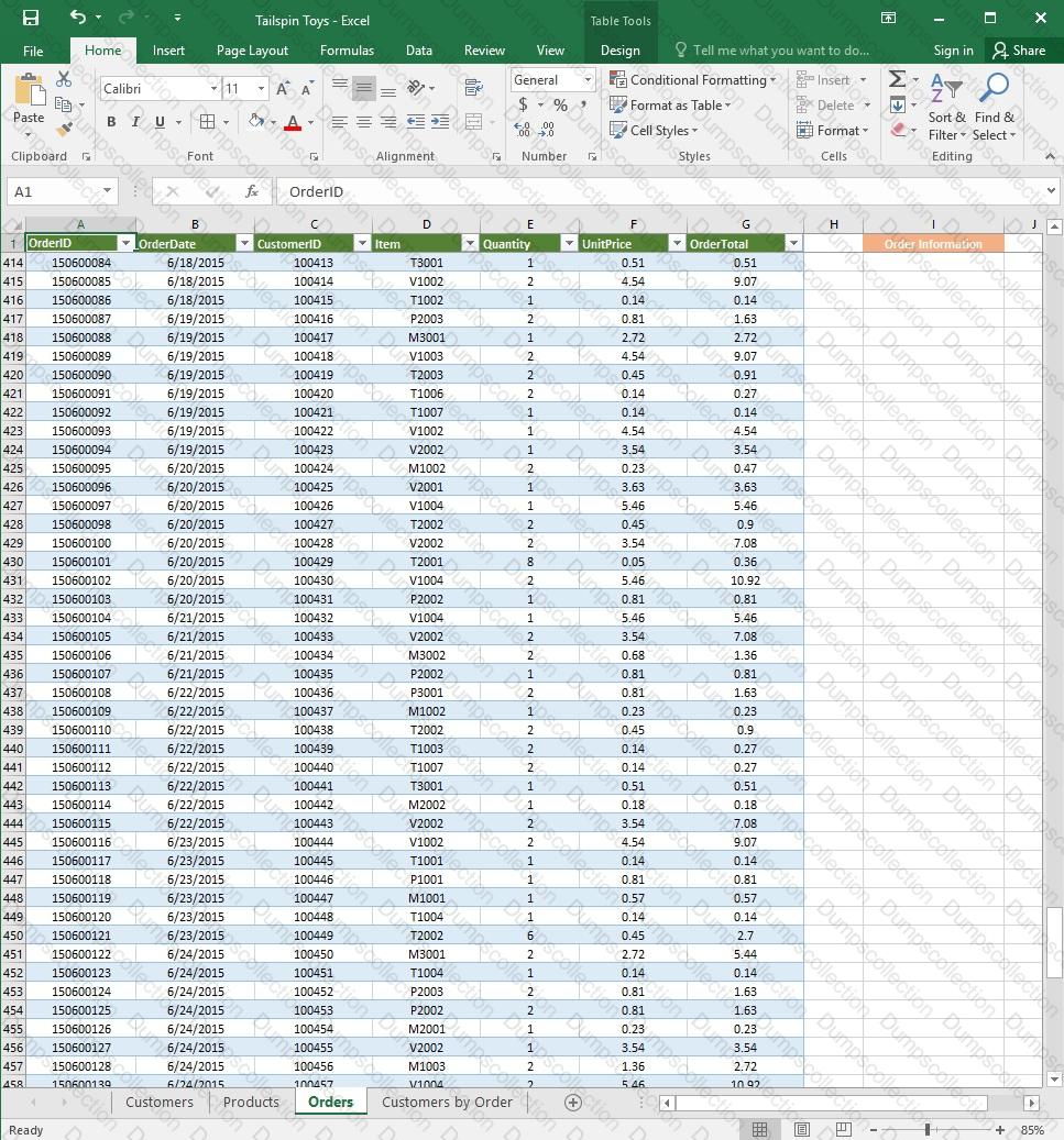 You recently opened an online toy store. You have sold products to 500 individual customers. You are evaluating customer data and order data.