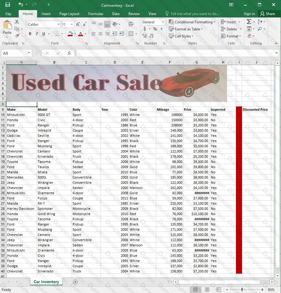 You manage the office of a used car business. You have been asked to prepare the inventory list for a big annual sale.