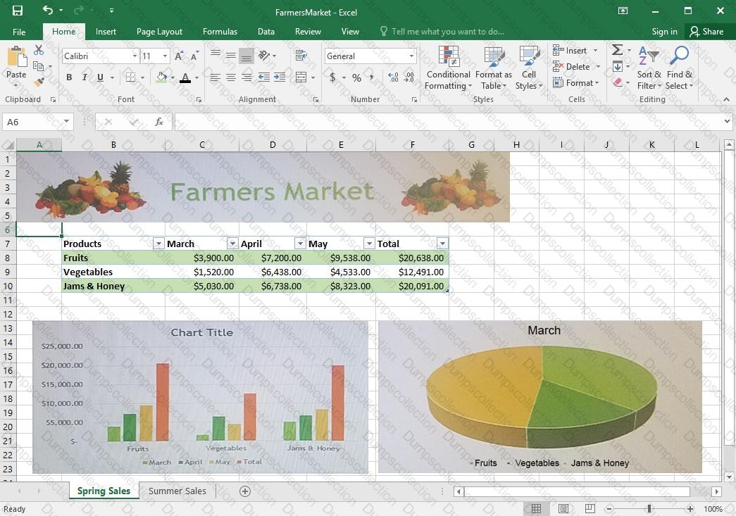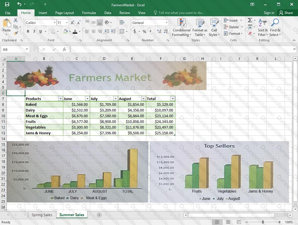 You are the Directorof a local farmers’ market. You are creating and modifying charts for a report which shows the amounts and variety of products sold during the season.