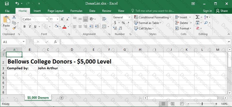 You are an executive assistant for a non-profit organization named Bellows College. You are updating a workbook containing lists of donors.