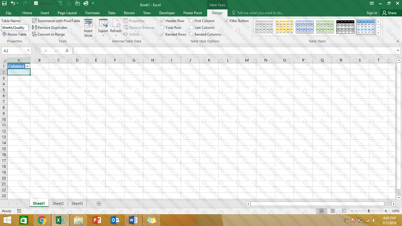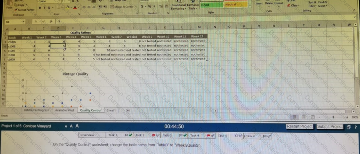 On the “Quality Control” worksheet change the table name from “Table3” to WeeklyQuality”.