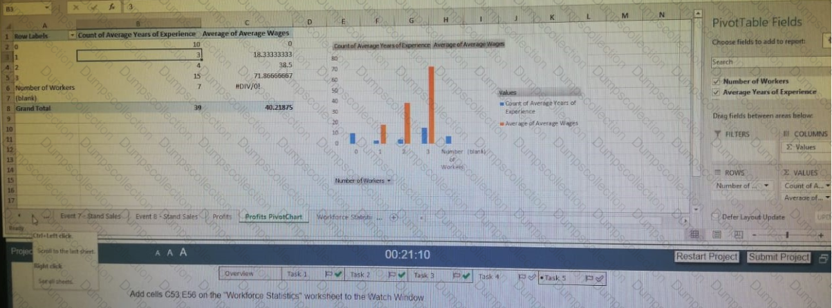 Add cells C53 E56 on the “Workforce Statistics” worksheet to the Watch Window.