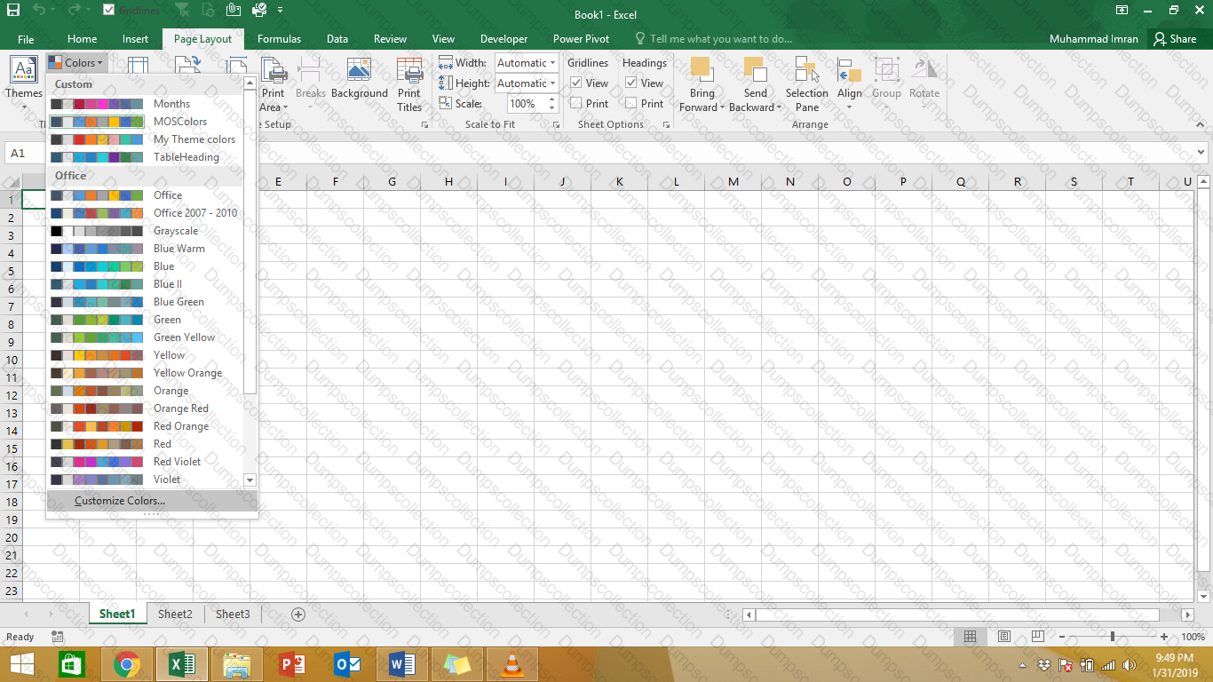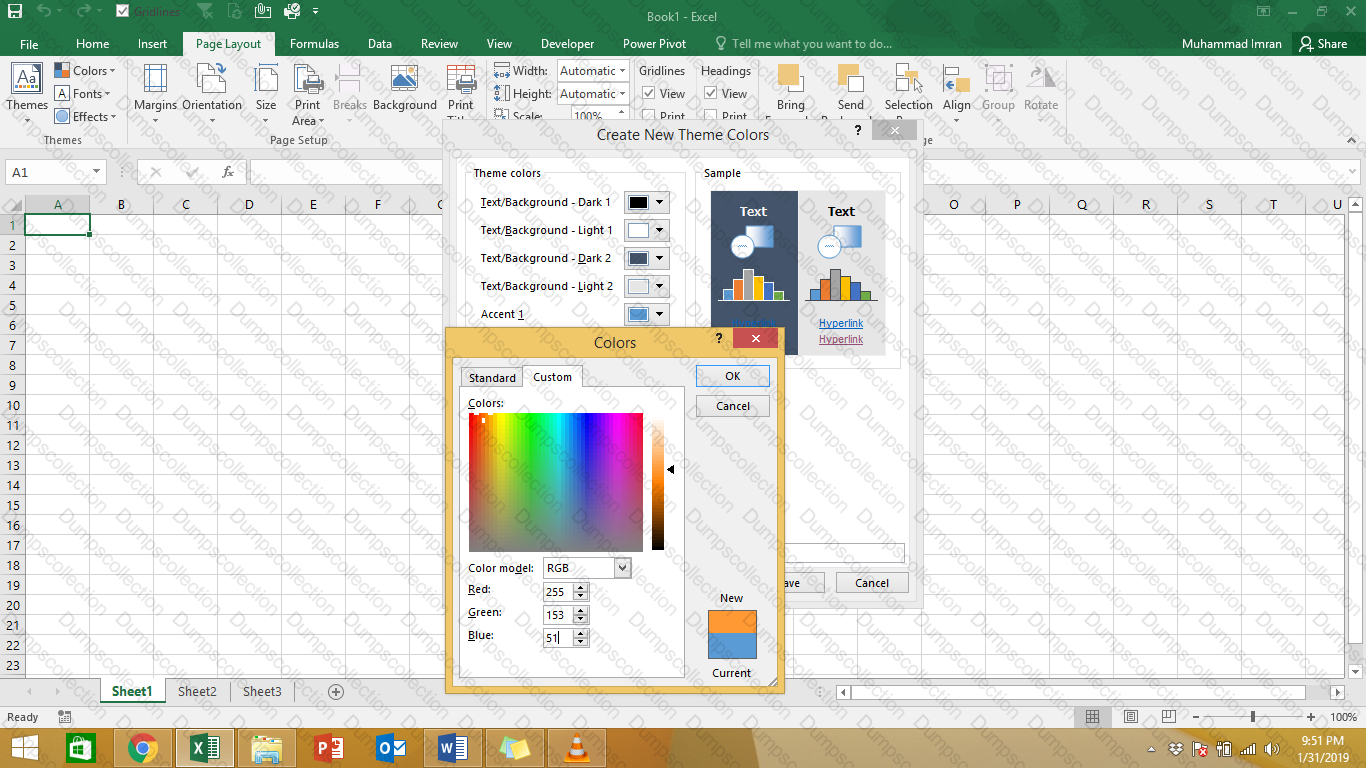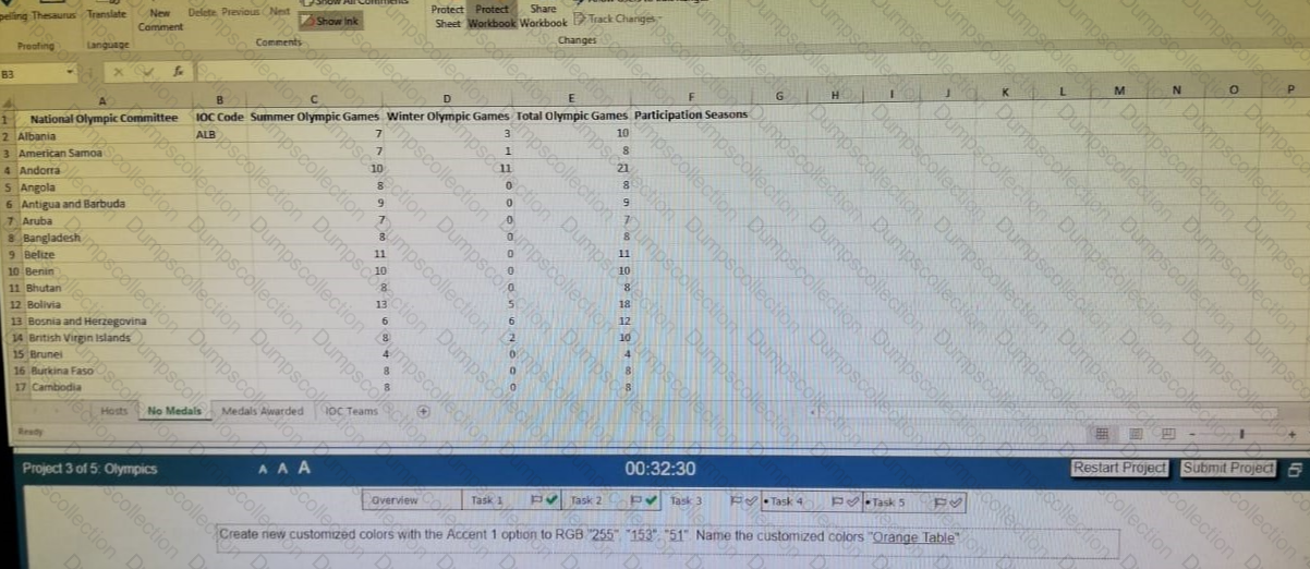 Create new customized colors with the Accent 1 option to RGB “255”, “153”, “51”. Name the customized colors “Orange Table”
