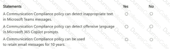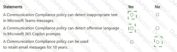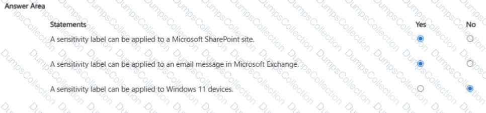 For each of the following statements, select Yes if the statement is true. Otherwise, select No.
