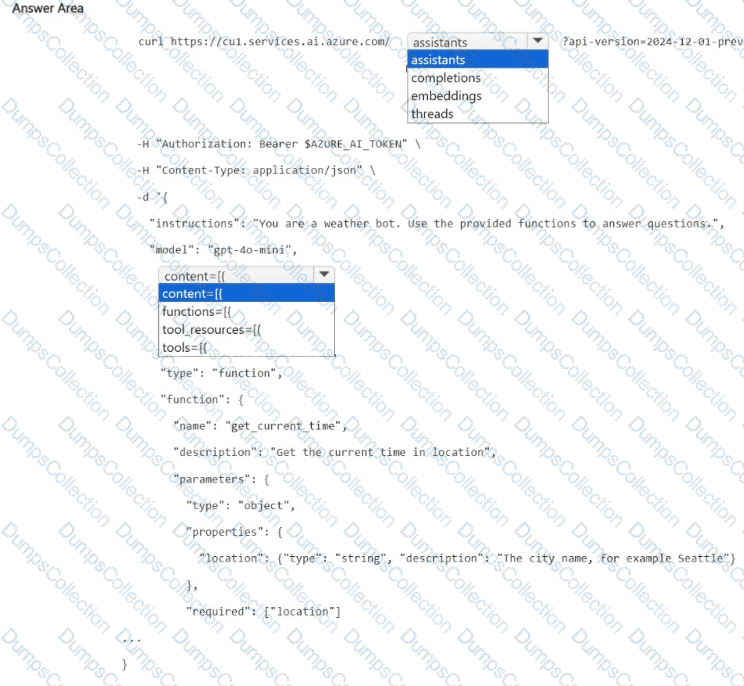 How should you complete the code? To answer, select the appropriate options in the answer area.