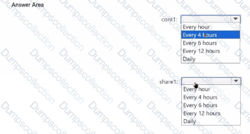 You need to configure Azure Backup to meet the technical requirements for cont1 and share1.