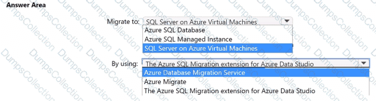 To which service should you migrate DB1, and what should you use to perform the migration? To answer, select the appropriate options in the answer area.