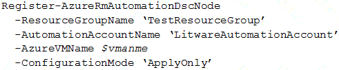 To resolve the current technical issue, what should you do to theRegister-AzureRmAutomationDscNodecommand?