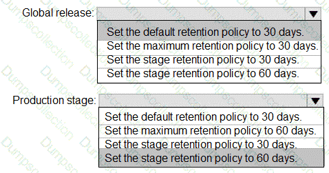 How should youconfigure the release retention policy for the investment planning applications suite? To answer, select the appropriate options in the answer area.
