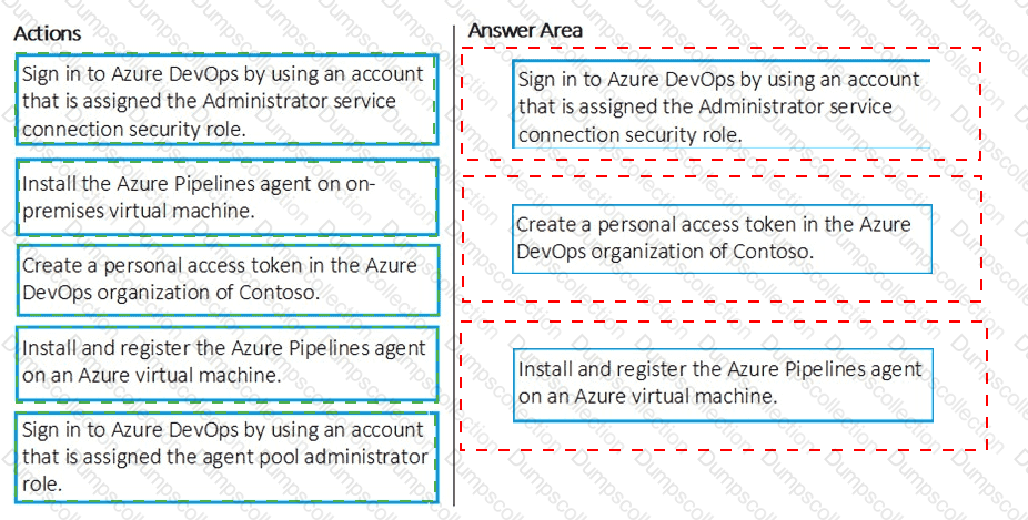 Which three actions should you perform in sequence? To answer, move the appropriate actions from the list ofactions to the answer area and arrange them in the correct order.